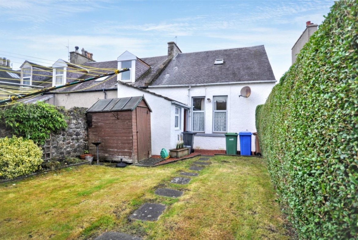 Private and sheltered garden with timber shed and a gate giving access out to a lane at the side of the house.