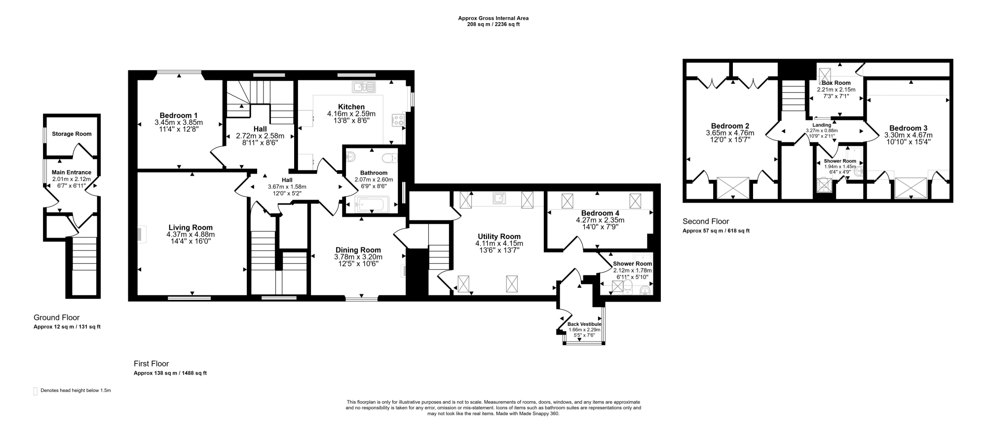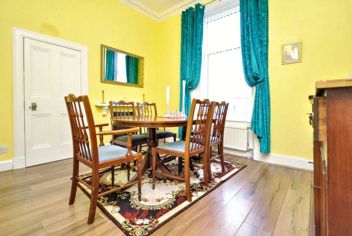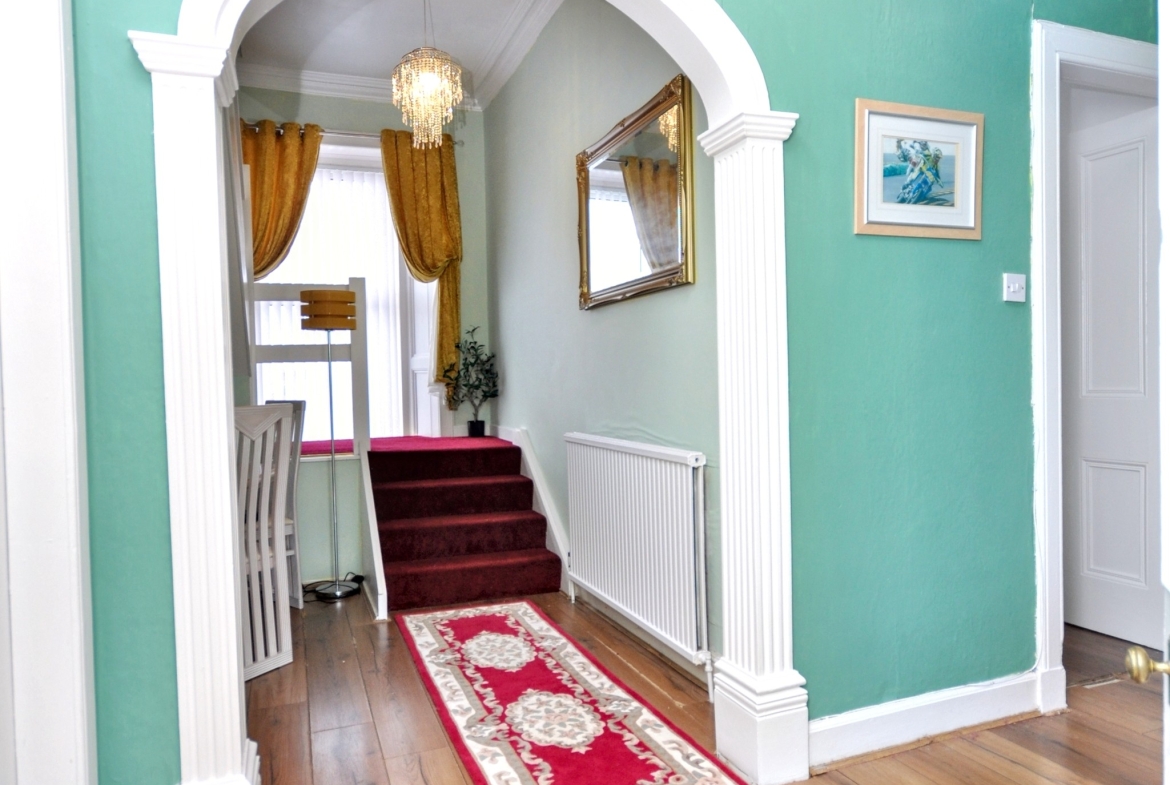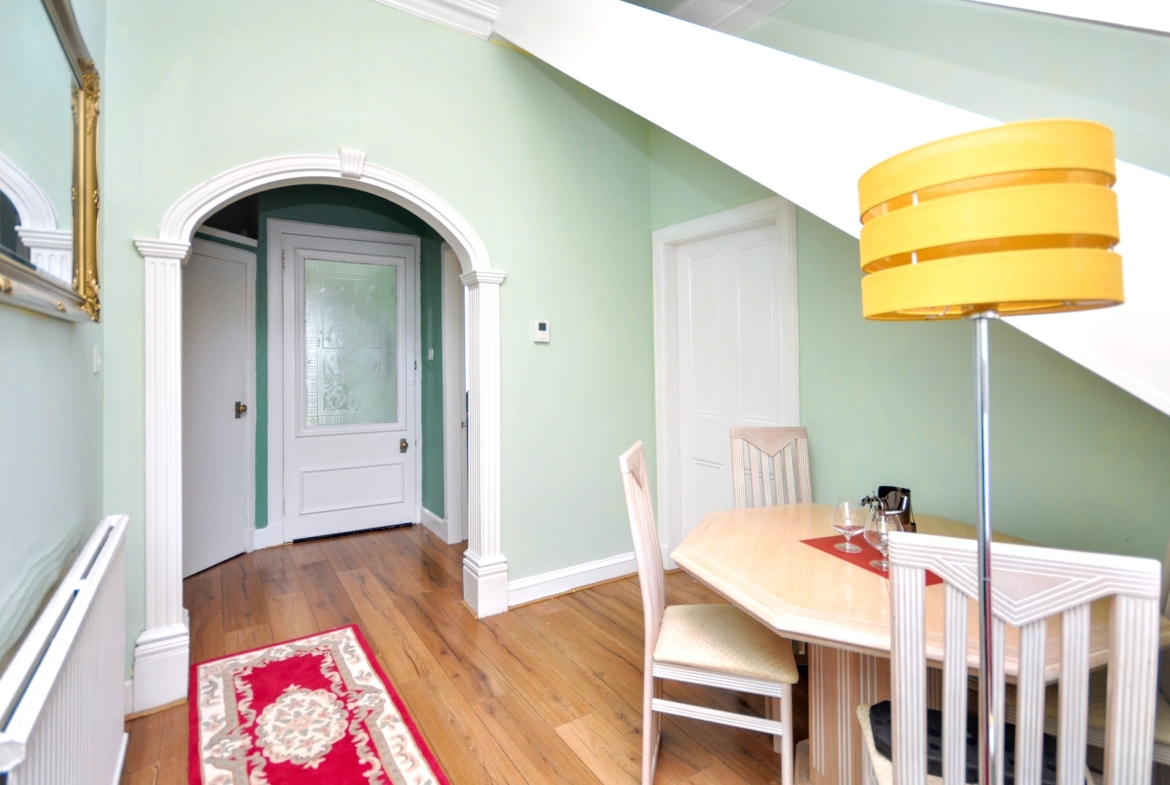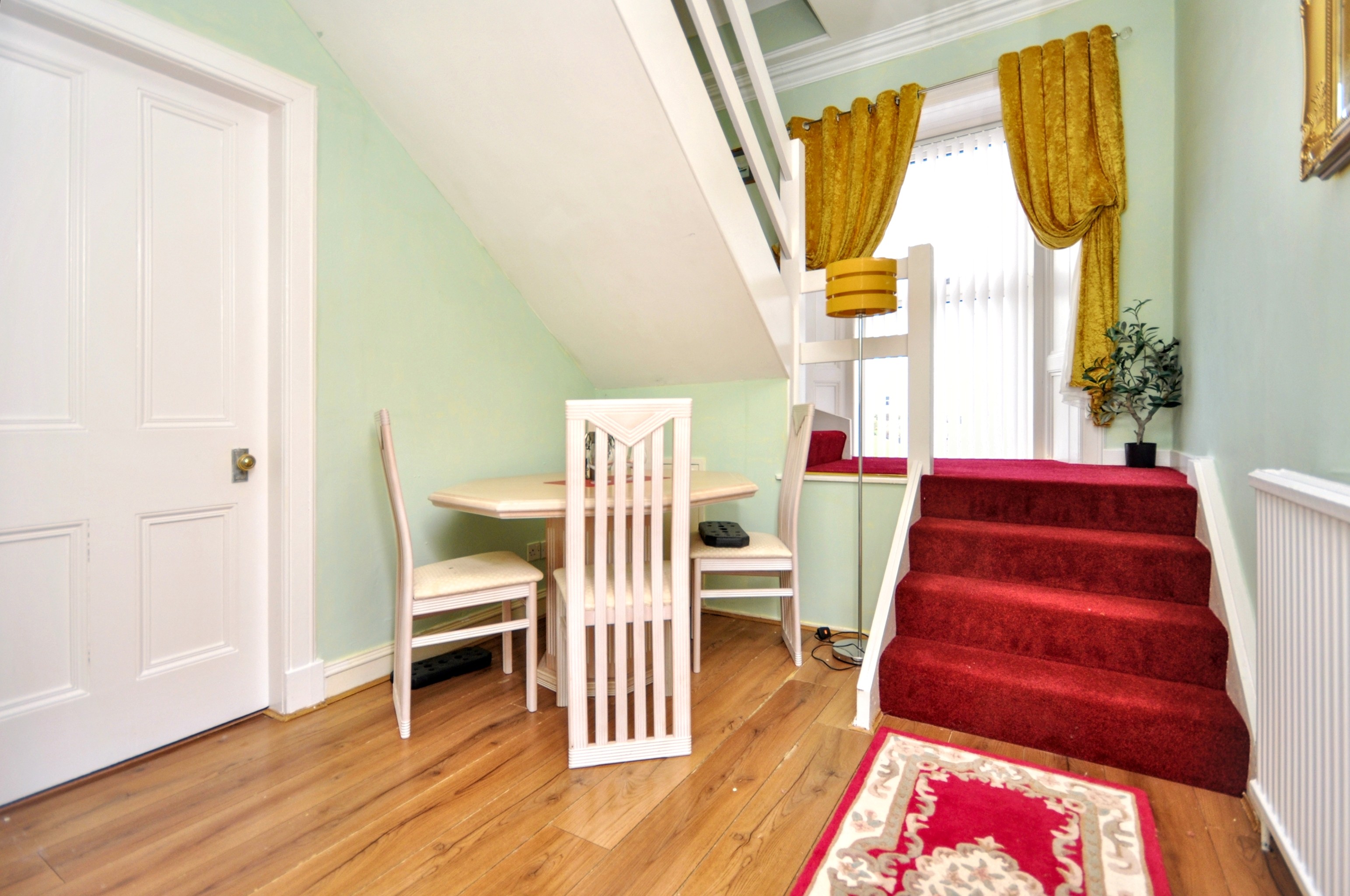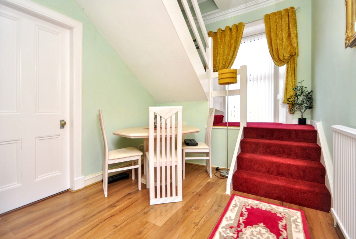 Spacious interior arranged over first and second floors of a larger semi detached building.