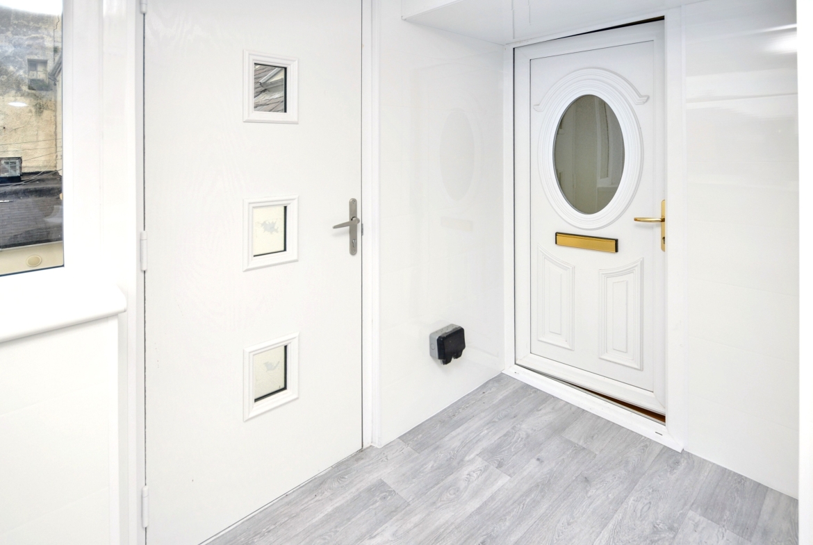Double gate access to the property to a good size area of level ground offering off street parking for 4 cars.
