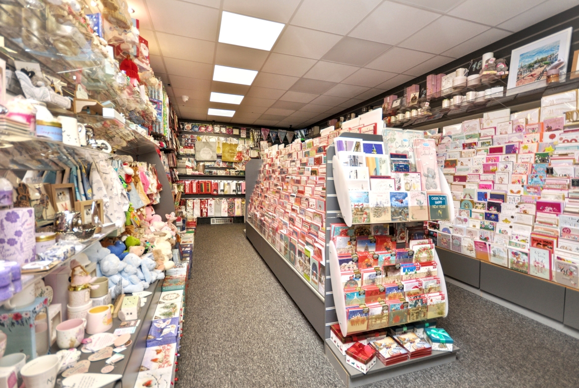 The shop features an arcaded entrance with a distinctive display window frontage, offering excellent visibility to passing footfall. The interior is bright, spacious and well equipped to continue the current business operation